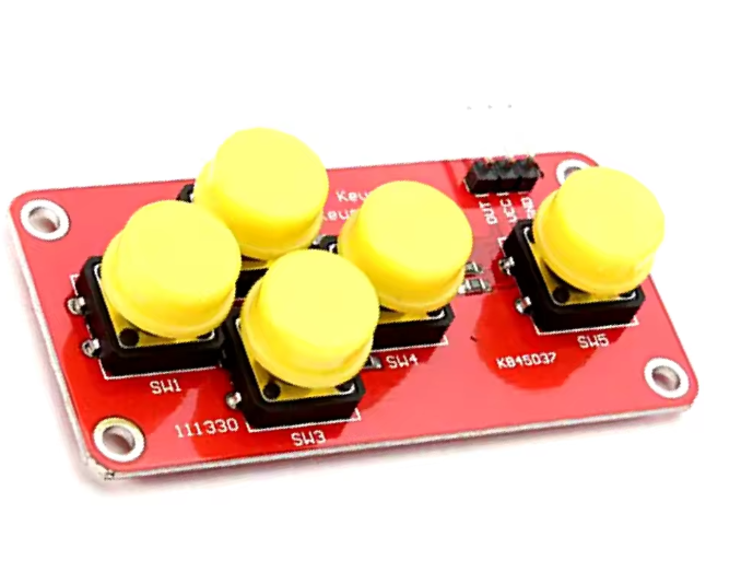 Dieses AD-Tastaturmodul ermöglicht die Steuerung von bis zu 5 Tasten über nur einen analogen Anschluss, wodurch wertvolle Arduino-IO-Pins gespart werden. Ideal für interaktive Projekte, DIY-Elektronik und Sensor-Erweiterungen.