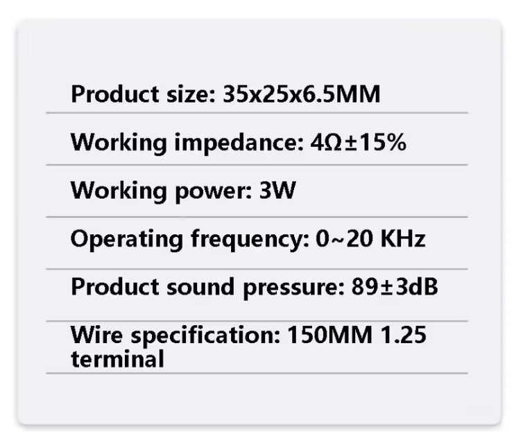 Dieser kompakte 4-Ohm-Mini-Lautsprecher eignet sich hervorragend für kleine Audioanwendungen, Embedded-Systeme und Elektronikprojekte. Durch das integrierte Lautsprechergehäuse (Cavity Box) wird die Klangqualität verbessert und ein klarer, stabiler Klang erzeugt.